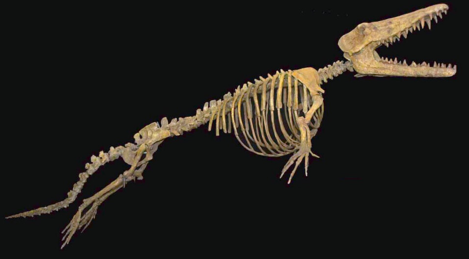 Ref: http://thegrandexperiment.com/whale-evolution.html. Comunicado de prensa de fecha 4-7-14. http://www.sermonaudio.com/sermoninfo.asp?SID=513141026269. " ¿Por qué los evolucionistas falsifican evidencia – Ballenas que caminan - Otro Fraude", Radio Generaciones, 5-13-14. Foto: Ambulocetus skeleton, Hans Thewissen, CC BY 2.0, Wikimedia Commons.