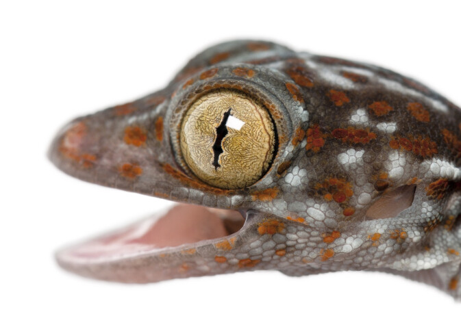 No es así con el geco de capucha. Basados en sus estudios de los ojos de los gecos, algunos científicos se preguntaban si podían ver en la oscuridad. Para probar esto, hicieron cartas con patrones de ajedrez de azules y grises. Luego se les entrenó a los gecos a tomar grillos etiquetados con una de las tarjetas. Luego, ofrecieron a los gecos grillos etiquetados con una tarjeta azul, y los premiaron con el grillo esperado. A los grillos etiquetados con tarjetas color gris se les hizo tener un mal sabor al ponerlos en agua salada. Durante estas pruebas el nivel de luz era tan bajo que los investigadores no podían darse cuenta la diferencia entre los colores. Sin embargo, los gecos tomaban más a menudo los grillos que tenían las tarjetas azules por lo menos dos veces, y así comprobaron que podían ver las diferencias de color.