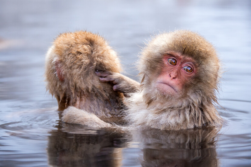 Ref: Dava Sobel, “Aquatic Ape,” OMNI, Vol 5-12, p. 150. Image: Macaques in water, Envato.