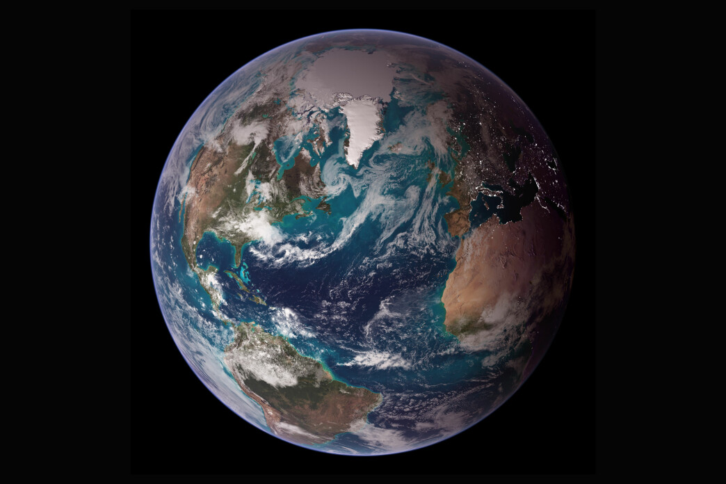 Image: Earth, Blue Marble Western Hemisphere, NASA images by Reto Stöckli, based on data from NASA and NOAA., Terra MODIS, PD, Wikimedia Commons.