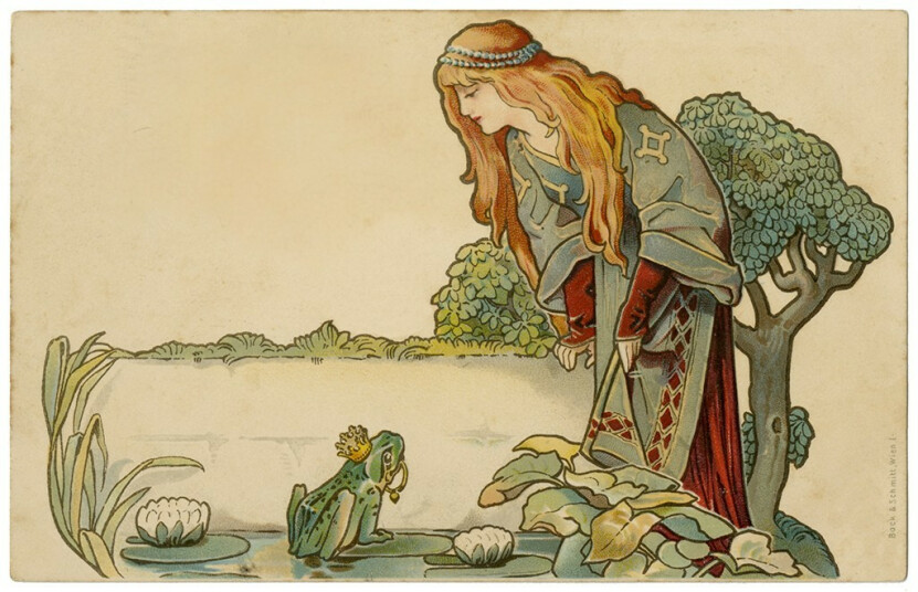 REF: Wald, George. The origin of life. Scientific American. Image: 253-15 Frog Prince, Jack Zipes Historic Fairy Tale Postcard Collection, MCAD Library, CC BY 2.0, Wikimedia Commons, changes made.