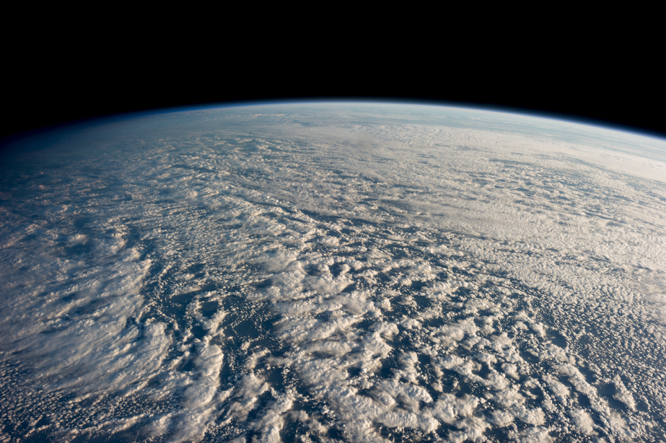 REF.: Clouds keep ocean temperatures down. Science News, v. 139. Image: Stratocumulus clouds over pacific ocean, ISS Expedition 34 CrewImage Science & Analysis Laboratory, NASA Johnson Space Center, Derivative work including grading, lens profile correction and noise removal, Julian Herzog, PD, Wikimedia Commons.