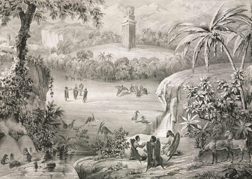 REF: The great moon hoax. Science Digest. DeGarmo, S. A religious controversy. Science Digest. Image: Great Moon Hoax, Lith. de Thierry Frères., PD, Wikimedia Commons.