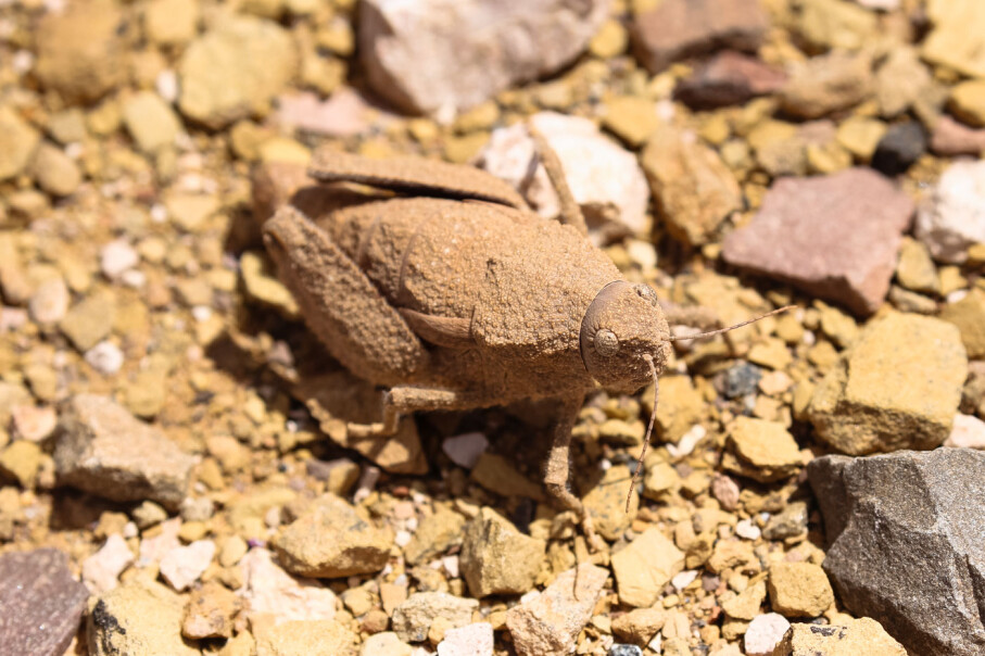 Ref: "The masters of mimicry." Discover. Trachypetrella anderssonii (Stone grasshopper), Ragnhild & Neil Crawford from Sweden, CC BY-SA 2.0, Wikimedia Commons.