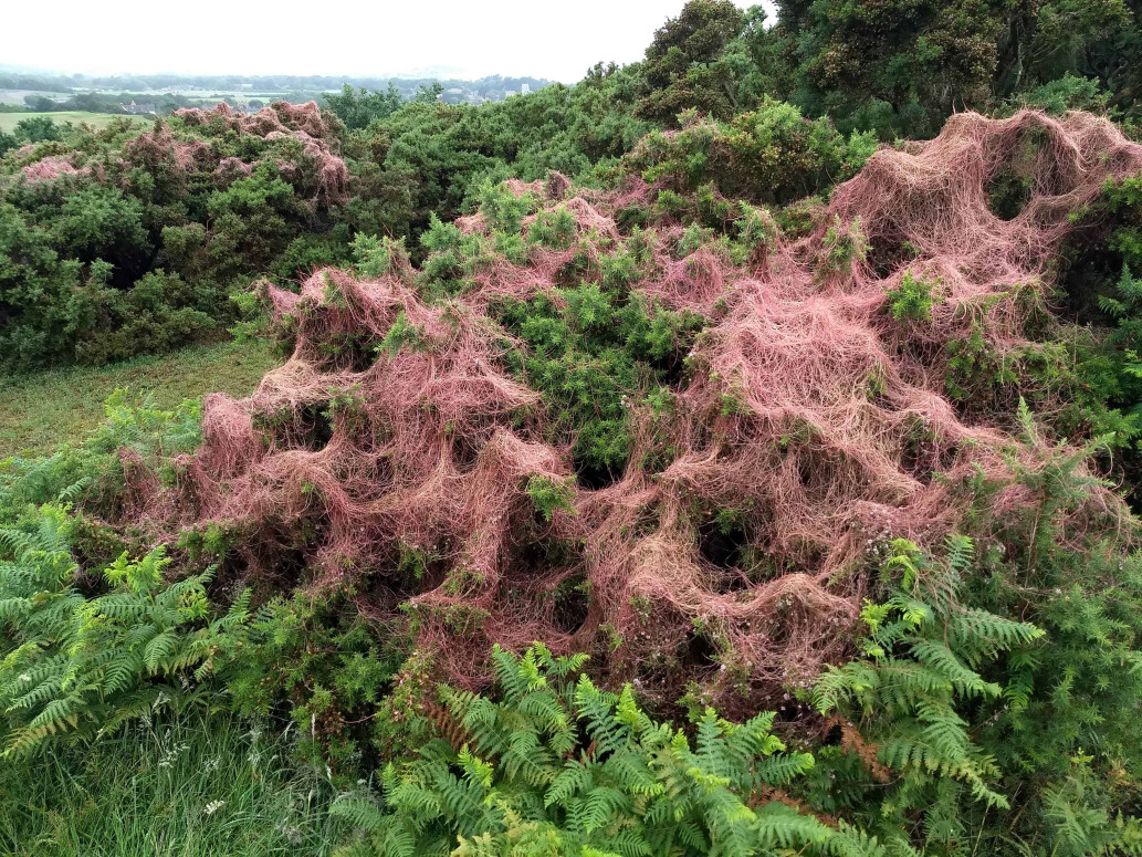 Ref: Science News, S. Milius, “Scent Stalking.” Image: Dodder on gorse, Mikenorton, CC BY-SA 4.0, Wikimedia Commons.