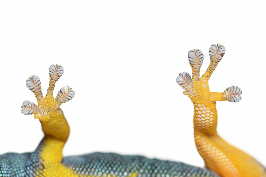 Noting that geckos never seem to clean their feet, scientists wondered what would happen if the microscopic hairs became fouled with microscopic dust particles. They computed that particles would have to foul between 26 and 59 hairs on each foot to be effective. They then fouled geckos’ feet with micro-spheres and observed them as they walked on a glass surface. To their surprise, with each step the geckos’ grip on the glass surface became stronger. This result suggested that with each step, the geckos’ feet were shedding some of the micro-spheres. To determine if this was what was happening, scientists removed some of the fibers from gecko feet and studied their interaction with the micro-spheres. Their conclusion was that gecko feet are indeed self-cleaning.