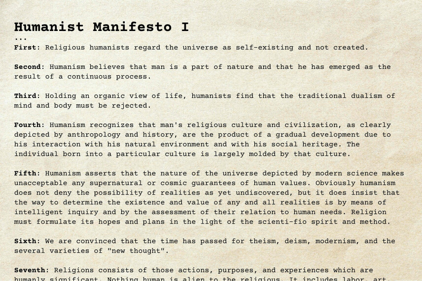 Image: Excerpt from Humanist Manifesto I.