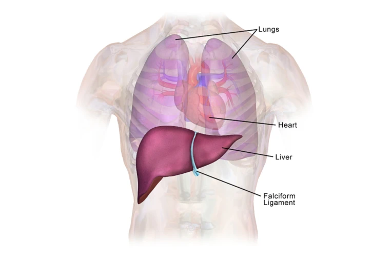 REF.: The liver: the body’s refinery. Discover. Image: Liver location, BruceBlaus, WikiJournal of Medicine, CC BY 3.0, Wikimedia Commons, changes made.