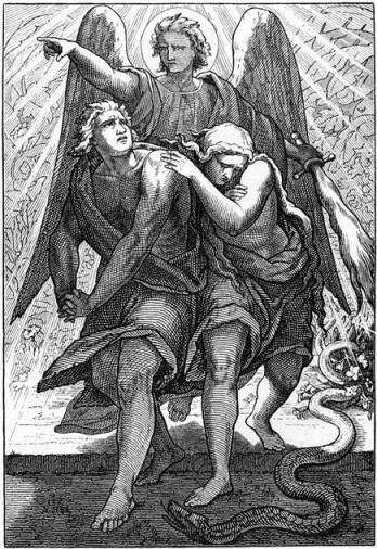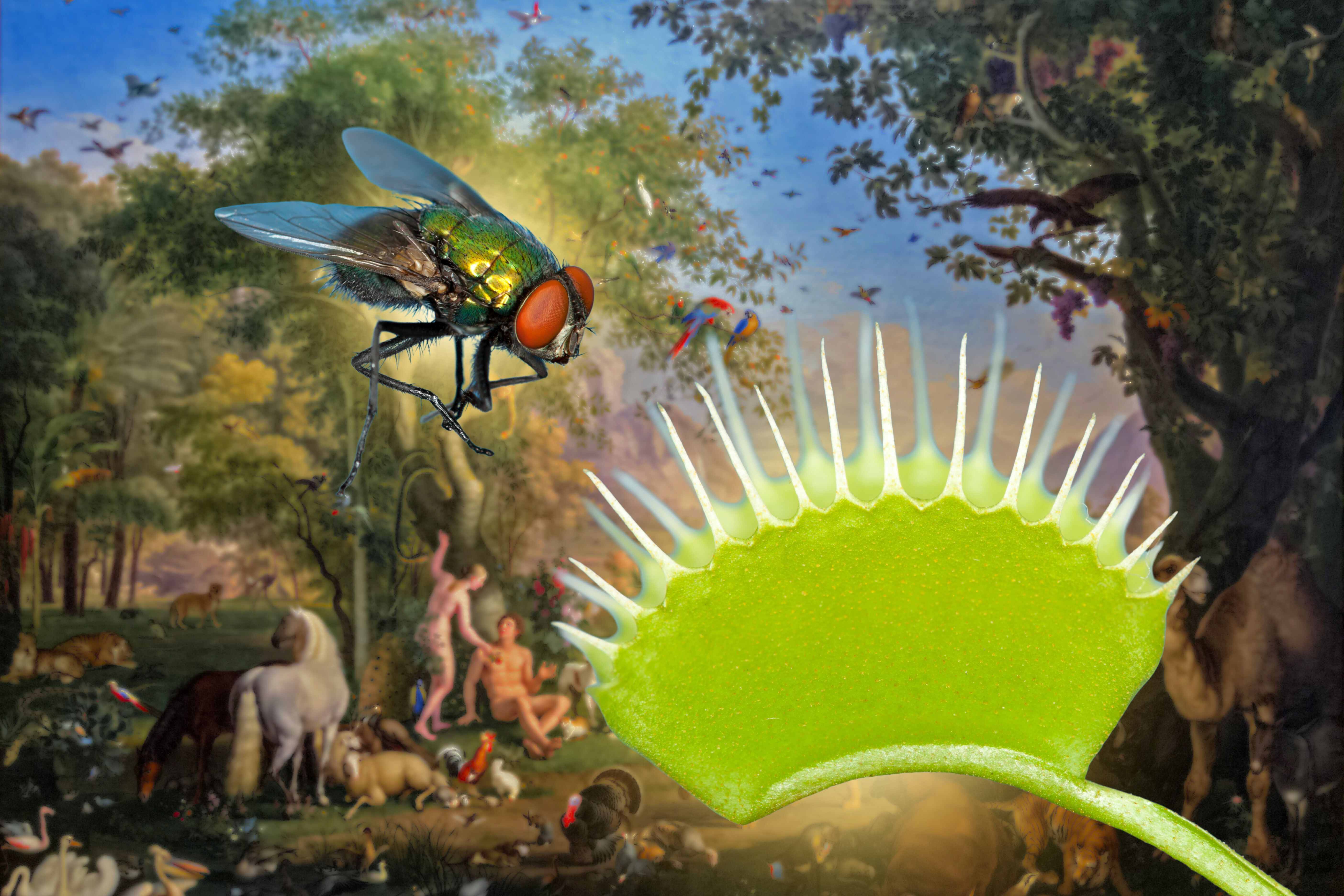 Images: Snap, Digest, Absorb: How the Venus flytrap processes prey, L. Modica Knowable Magazine, CC BY-SA 4.0, Wikimedia Commons, changes made. Venus flytrap illustration, Charles Darwin, Translation J. Victor Carus, PD, via Wikimedia Commons. Adam and Eve are driven out of Eden, Charles Foster, PD, Wikimedia Commons.