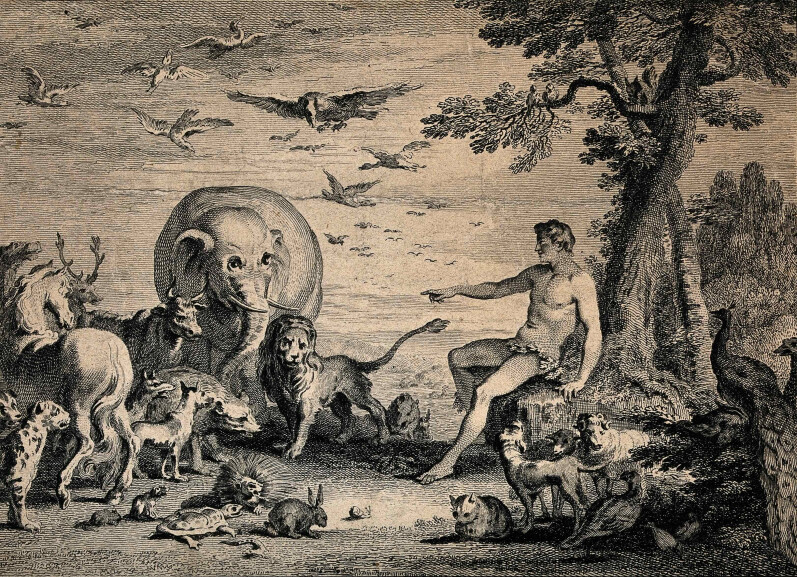 Images: Adam naming the animals, Etching by G. Scotin and J. Cole after H. Gravelot and J.B. Chatelain, CC BY 4.0, via Wikimedia Commons. Jesus and Nicodemus, Providence Lithograph Company, PD, Wikimedia Commons.