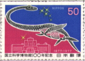 The plesiosaur, a sea-dwelling dinosaur believed to have become extinct at the time of the demise of all the other dinosaurs about 60 million years ago, was possibly discovered as a rotting corpse in the South Pacific by a Japanese trawler in April 1977. A zoologist aboard the vessel recognized it, took fin samples, photographs, counted vertebrae, etc., then, under the captain's orders, had to dump it back in the ocean. The Japanese government celebrated the discovery with a 50 yen postage stamp as the "discovery of the century" (seen above). After further review, many, but not all, creation scientists believe the carcass to have actually been that of a basking shark.