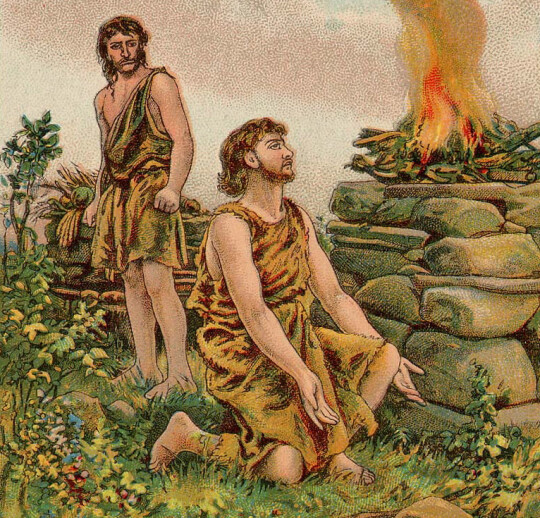Ref: Charles, Robert Henry [translator]. 2005. The Book of Jubilees or the Little Genesis. Original publishers: Society for Promoting Christian Knowledge, UK. Published 2005 by: Ibis Press, Berwick, Maine. Images: Cain and his family wandering, Paolo Veronese, PD, Wikimedia Commons, changes made. The Story of Cain and Abel, the Providence Lithograph Company, PD, Wikimedia Commons.
